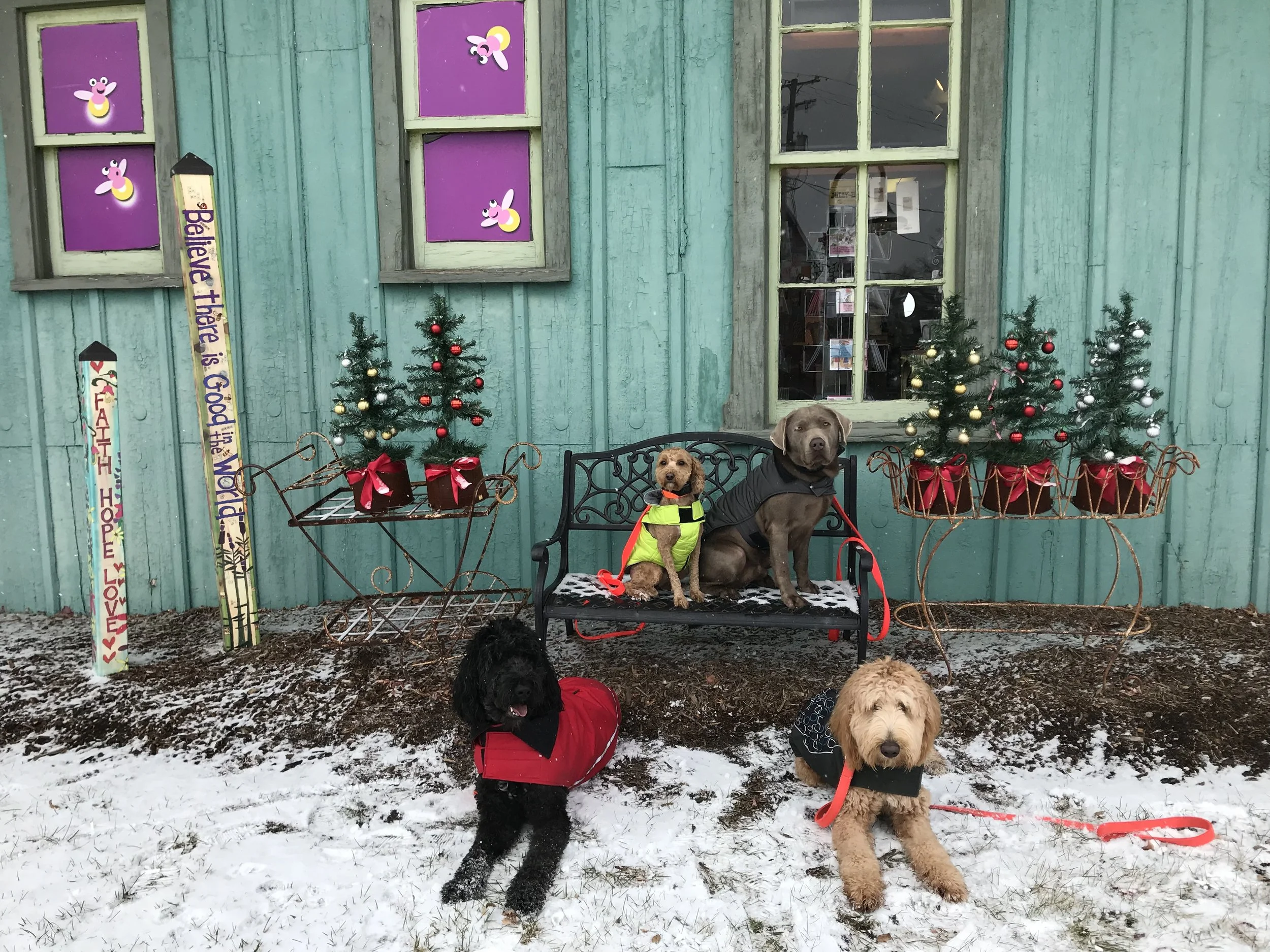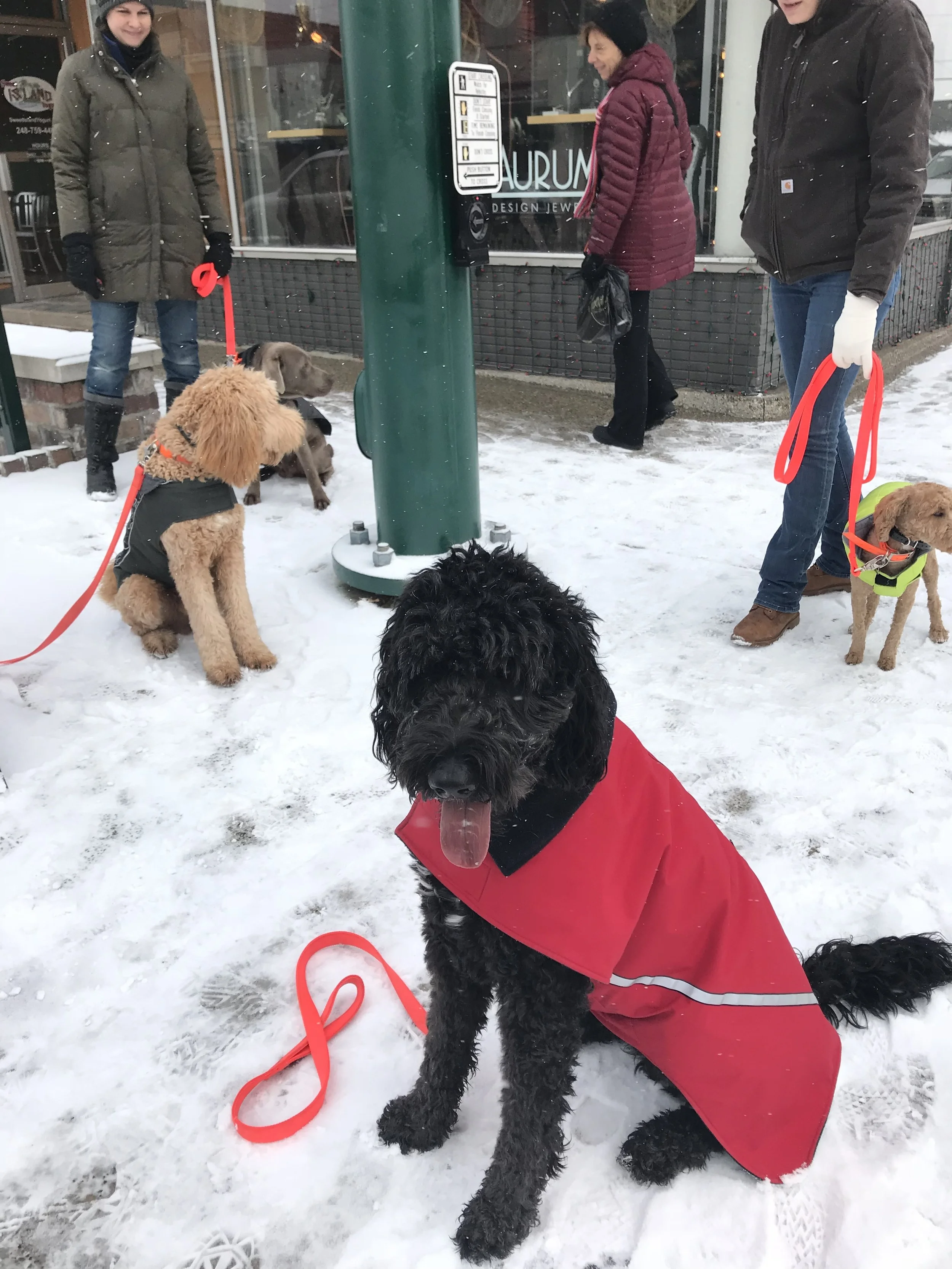 Lisa Farlin December 9, 2017 Trainers working in downtown Rochester today with Off-Leash Students Lisa Farlin December 9, 2017